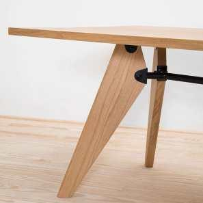 Le matériau de la table est en bois, avec une texture de grain de bois naturelle et lisse, et les belles rainures verticales sur les pieds de la table sont élégantes et atmosphériques ;La conception visuelle de l'arc chaleureux et arrondi du bureau rend les détails exquis et exquis, rendant l'environnement de la maison et du restaurant plein de chaleur.